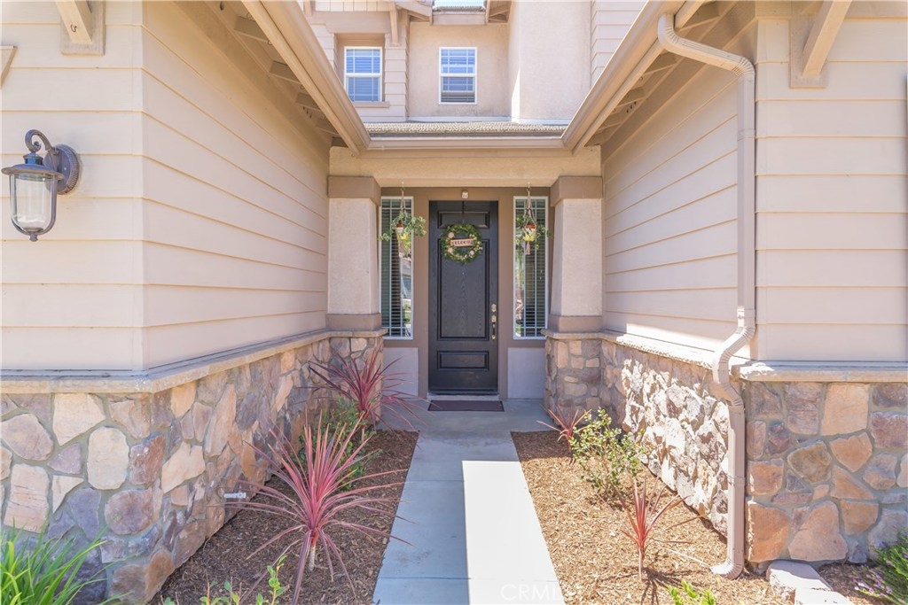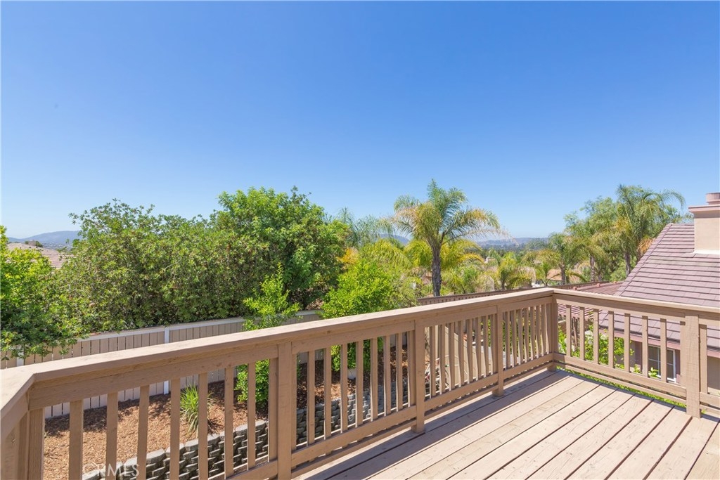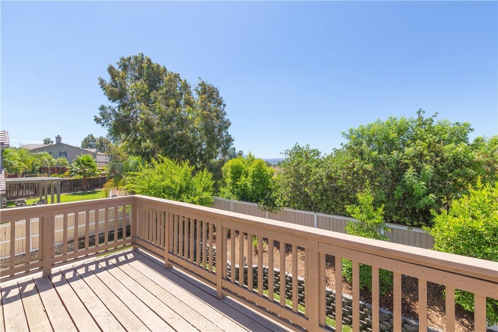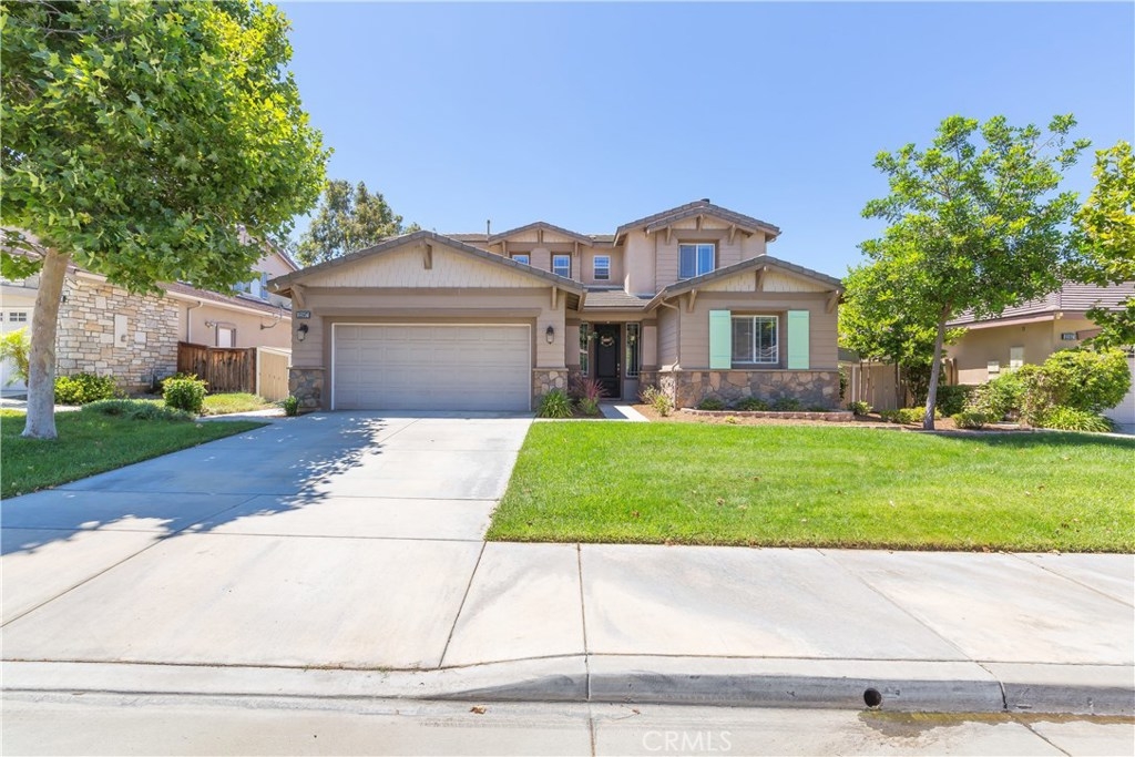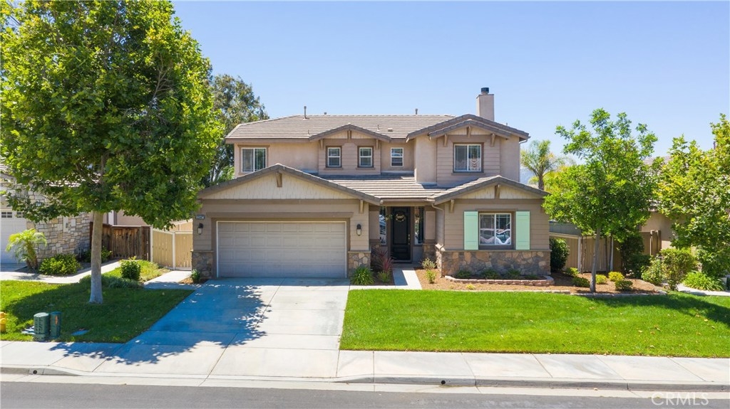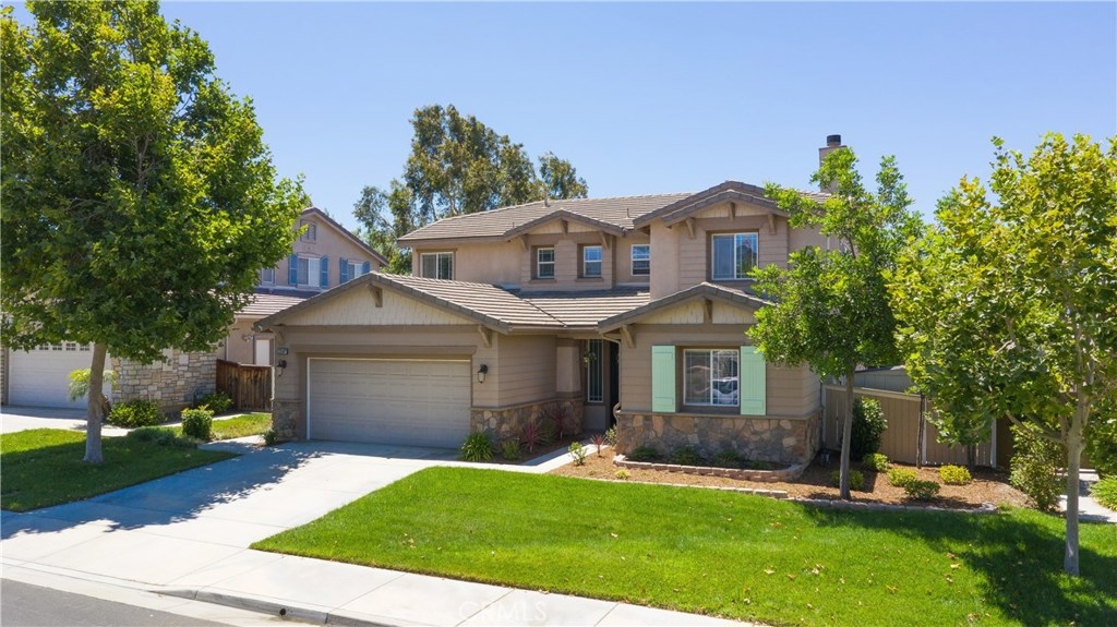Welcome Home! Located in the prestigious neighborhood of Crowne Hill, this beautiful home boasts 5 bedrooms, 3 Full Baths, and a 3 car tandem garage! Main floor bedroom plus a full bath. Rich wood-like laminate flooring throughout the main level. Upstairs features neutral carpet, laminate and tile flooring. Neutral paint throughout. Separate formal dining room with upgraded wainscot/moulding. Separate formal living room! The large kitchen has updated cabinets, under cabinet lighting, new white backsplash/wall tile, large center island with abundant storage, walk-in pantry, and large eating area. Relax in the large family room with a raised fireplace surrounded by gorgeous stacked stone! Convenient upstairs laundry room plus 4 additional bedrooms. One bedroom utilized as an office has tongue and groove engineered hardwood flooring! The spacious master bedroom features a private deck with gorgeous mountain views! Master bath has dual sinks, upgraded vanity cabinets, a walk-in closet and a separate tub and shower. Easy maintenance backyard with tiered planter, fruit trees (guava, pomegranate, kaffir lim, & lemon) and has a raised deck under the balcony for additional entertaining! Located within the boundaries of excellent schools, shopping, freeway access and a short drive to Temecula Wine Country.