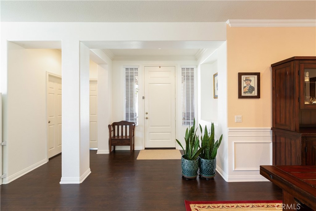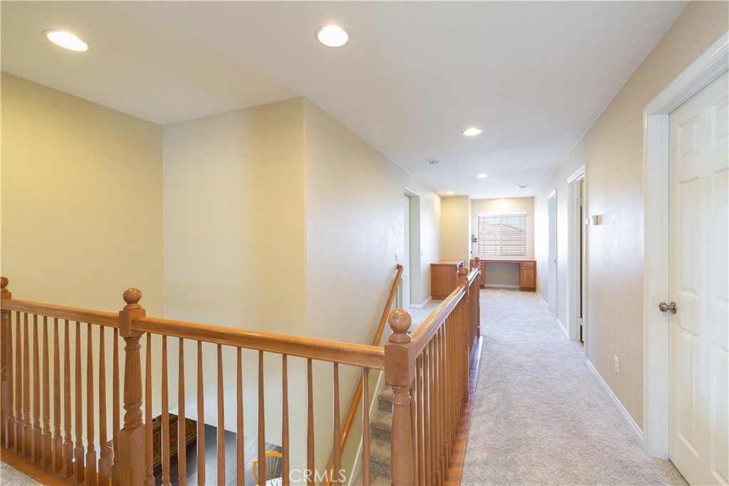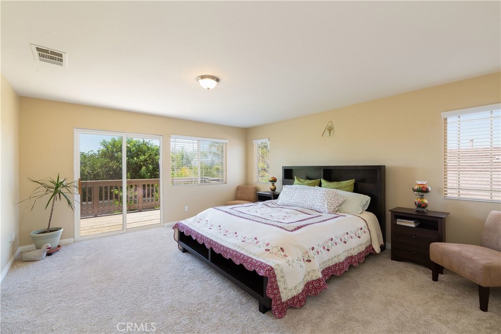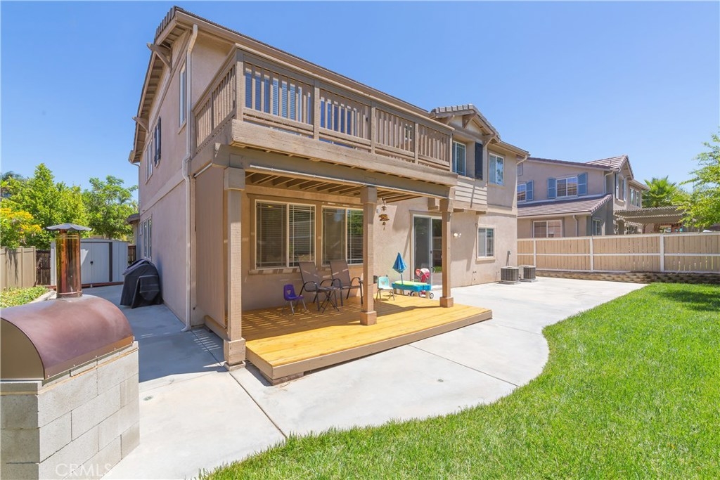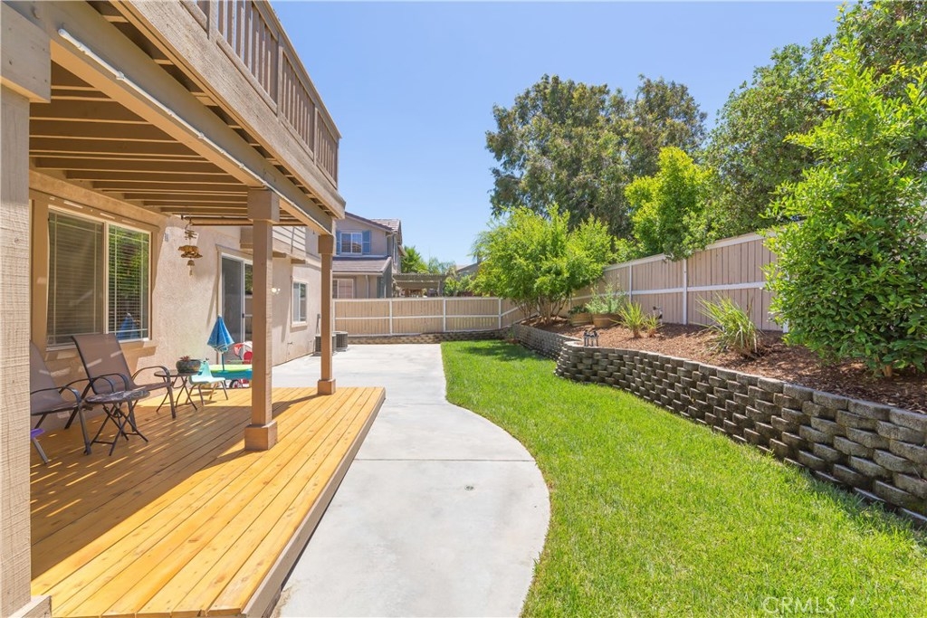 Welcome Home! Located in the prestigious neighborhood of Crowne Hill, this beautiful home boasts 5 bedrooms, 3 Full Baths, and a 3 car tandem garage! Main floor bedroom plus a full bath. Rich wood-like laminate flooring throughout the main level. Upstairs features neutral carpet, laminate and tile flooring. Neutral paint throughout. Separate formal dining room with upgraded wainscot/moulding. Separate formal living room! The large kitchen has updated cabinets, under cabinet lighting, new white backsplash/wall tile, large center island with abundant storage, walk-in pantry, and large eating area. Relax in the large family room with a raised fireplace surrounded by gorgeous stacked stone! Convenient upstairs laundry room plus 4 additional bedrooms. One bedroom utilized as an office has tongue and groove engineered hardwood flooring! The spacious master bedroom features a private deck with gorgeous mountain views! Master bath has dual sinks, upgraded vanity cabinets, a walk-in closet and a separate tub and shower. Easy maintenance backyard with tiered planter, fruit trees (guava, pomegranate, kaffir lim, & lemon) and has a raised deck under the balcony for additional entertaining! Located within the boundaries of excellent schools, shopping, freeway access and a short drive to Temecula Wine Country.