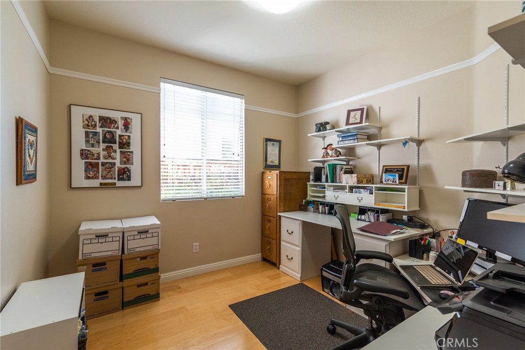 LOVELY CROWNE HILL HOME WITH 4TH BEDROOM POTENTIAL! THIS BEAUTIFUL MOVE IN READY HOME OFFERS 3 BEDROOMS, 2 BATHROOMS WITH A BONUS DEN THAT CAN EASILY BE CONVERTED INTO A 4TH BEDROOM. NEUTRAL PAINT, HARDWOOD AND TILE FLOORING THROUGHOUT. CUSTOM KITCHEN WITH GRANITE COUNTER TOPS, PULL OUT DRAWERS AND STAINLESS STEAL APPLIANCES. INDOOR LAUNDRY ROOM WITH STORAGE. MASTER BEDROOM HAS CUSTOM WALK IN CLOSET, DUAL SINKS, SEPARATE SHOWER, TUB AND SLIDING GLASS DOORS THAT LEAD OUT TO THE 30 FT. X 8 FT. LAP POOL. FRONT AND BACK YARD OFFER LOW MAINTENANCE LANDSCAPING WITH DIGITAL IRRIGATION SYSTEM. CUSTOM BUILT SHED ON EAST SIDE OF HOME. CAT 5 WIRING THROUGHOUT HOME. FULLY PAID SOLAR SYSTEM WITH MICRO INVERTERS FOR SAVINGS IN THE SUMMER MONTHS. WALKING DISTANCE TO CROWNE HILL ELEMENTARY AND A SHORT DRIVE TO TOP SHOPPING, RESTAURANTS AND 15 FREEWAY. SALE INCLUDES ALL KITCHEN APPLIENCES, WASHER AND DRYER. HURRY THIS HOME WILL NOT LAST!!