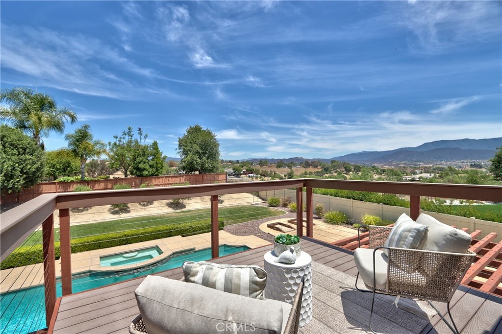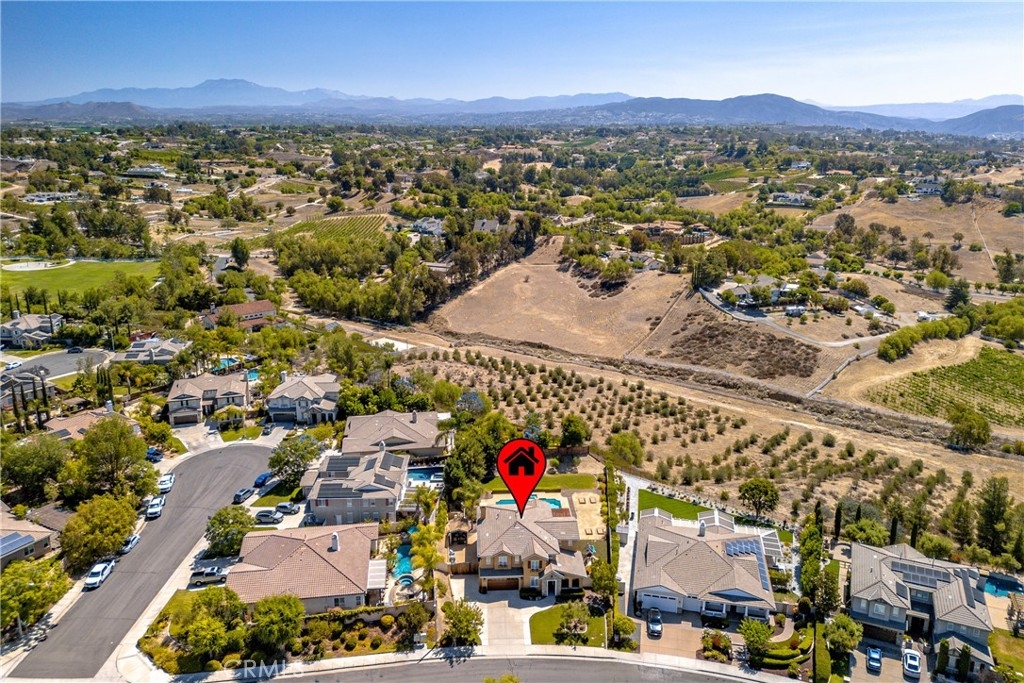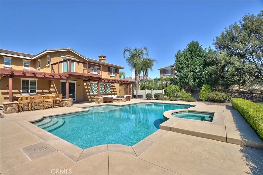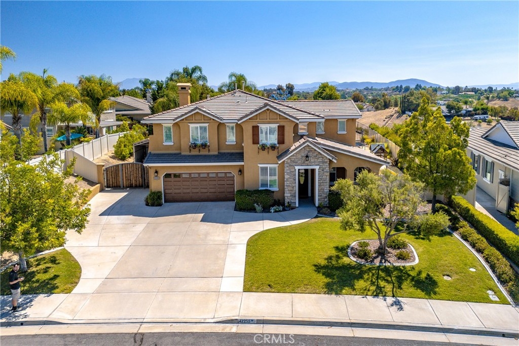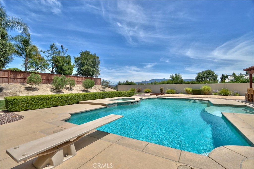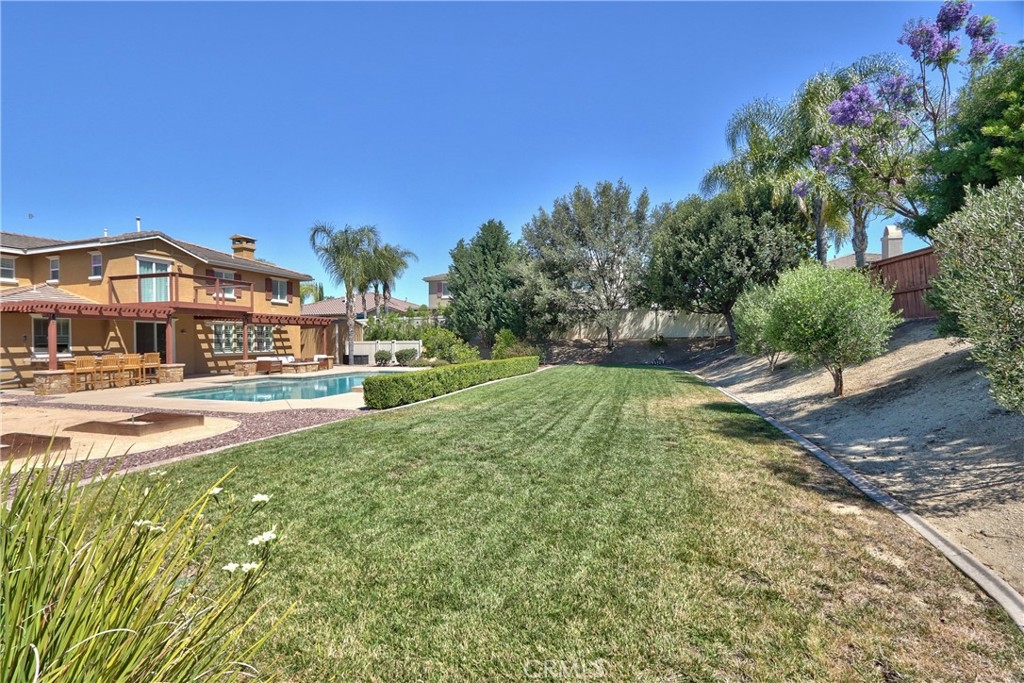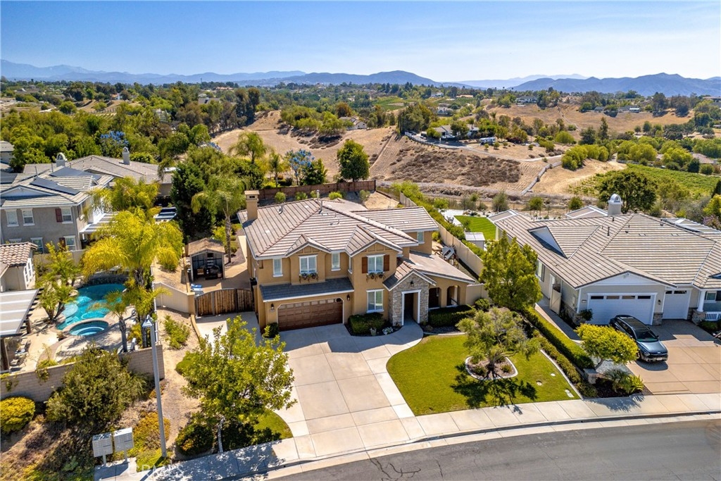 Rare Crown Hill Gem with Pool on one of the largest double Oversized Lots in Crown Hill. Don’t miss this rare opportunity to own a stunning home with views, large side yards on both sides of the home, oversized pool and spa with baja shelf. This beautiful 5-bedroom, 4-bathroom, 3,667 sq ft residence is truly turn-key and offers incredible space, functionality, and style—perfect for multigenerational living and entertaining. The home boasts excellent curb appeal with a 3-car tandem garage, extra-large driveway, double side gates, and a tall, oversized storage shed. The oversized backyard is a showstopper—complete with a sparkling pool and spa, built-in BBQ area, fire pit, covered patio, and wine country views. There’s ample space for a play area, horseshoes, gardening, or even a potential ADU. Step inside to find hardwood floors, a formal living room, and a separate dining room. The heart of the home is the upgraded kitchen, featuring new quartz countertops, a new cooktop, large walk-in pantry, and a butler’s area. A breakfast area with an 8-ft sliding glass door opens to the backyard and floods the space with natural light. The kitchen flows seamlessly into the spacious family room, complete with a cozy fireplace. Downstairs includes a full bedroom and bath and walk in closet—ideal for guests, a home office, or extended family. Downstairs laundry room with sink. Upstairs, enjoy a large loft area that can be used as a media room, playroom, or converted into a 6th bedroom. The primary suite is a retreat, offering a private balcony with breathtaking views, a spacious sitting area, a large walk-in closet, dual vanities, a soaking tub, and a walk-in shower. Three additional generously sized bedrooms—all with walk-in closets—are supported by two full bathrooms. Additional features upstairs include Built-in cabinetry upstairs for books and photos. Ample closets for additional storage. Side yard access with double walk gate and large oversized storage shed can be used as a small workshop. Located within the award-winning Temecula school district. Close to shopping, wineries, and freeway access