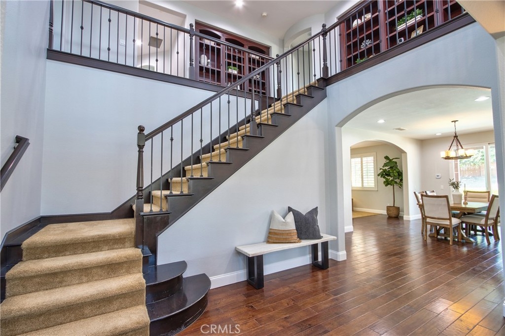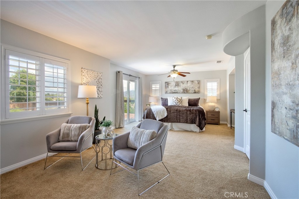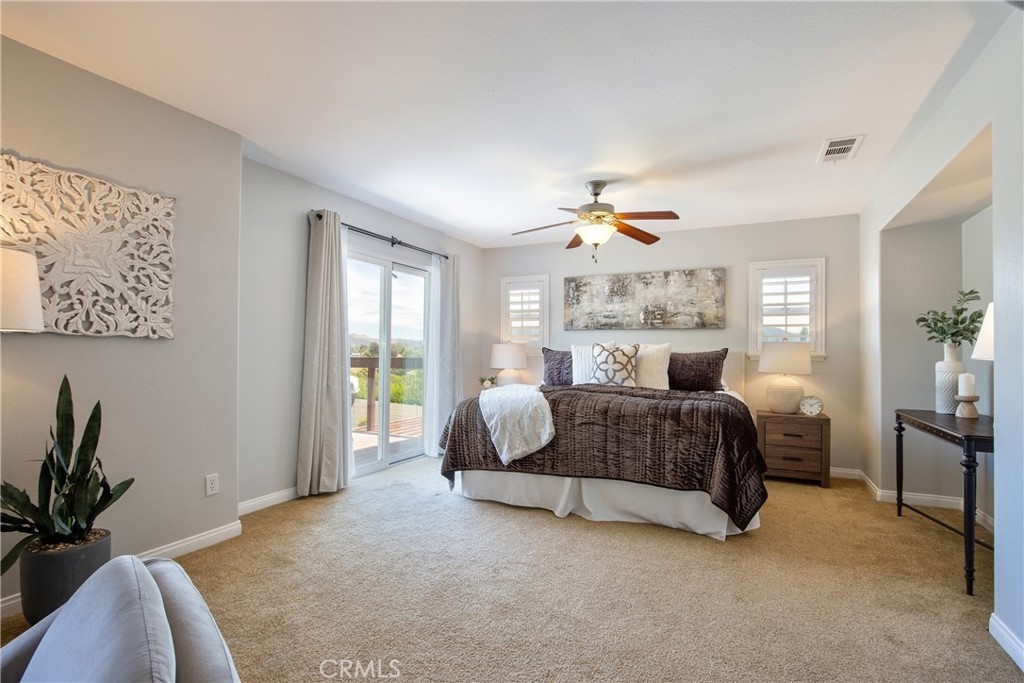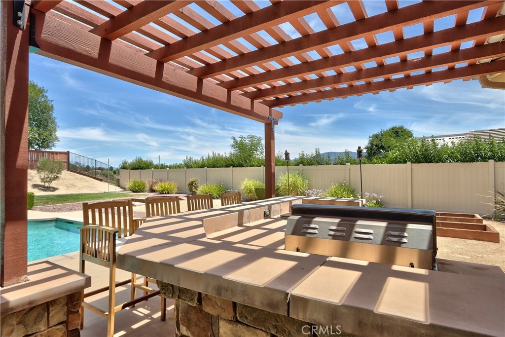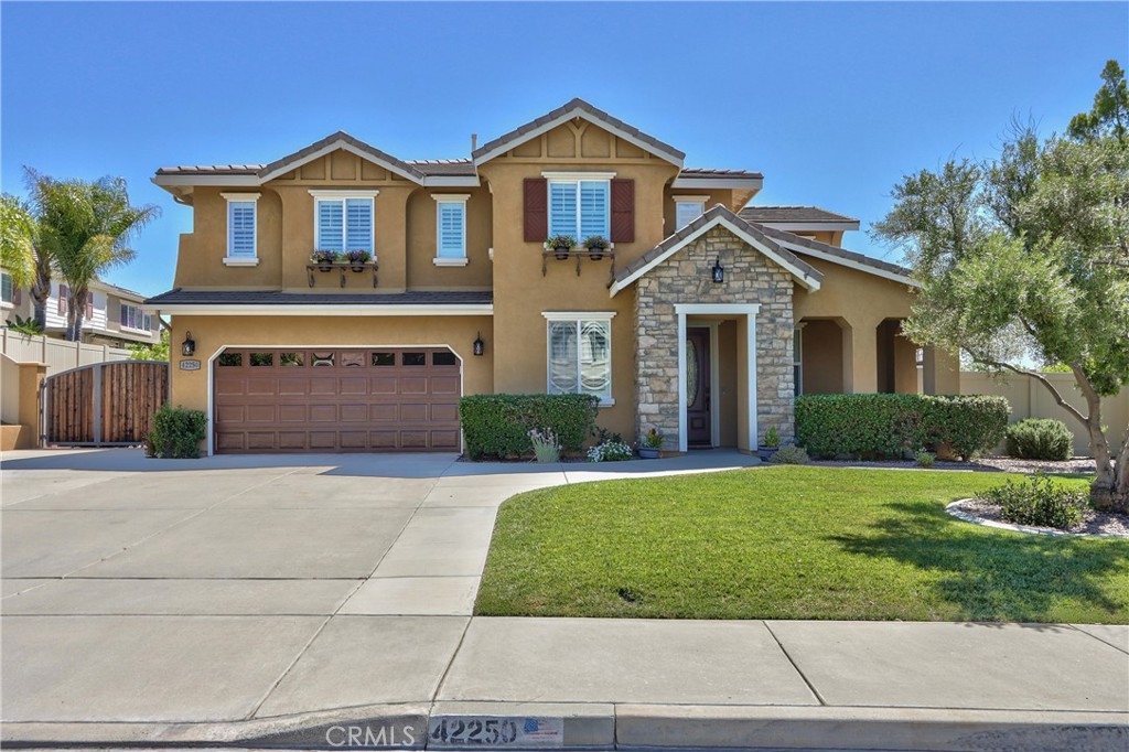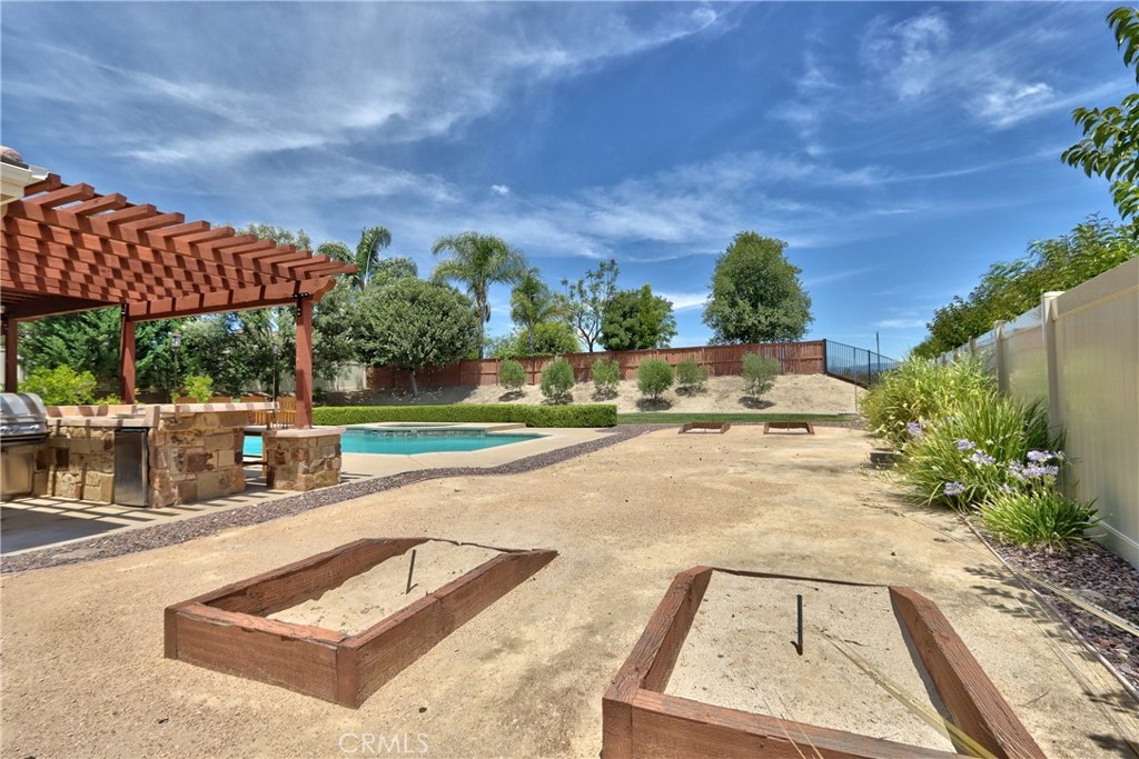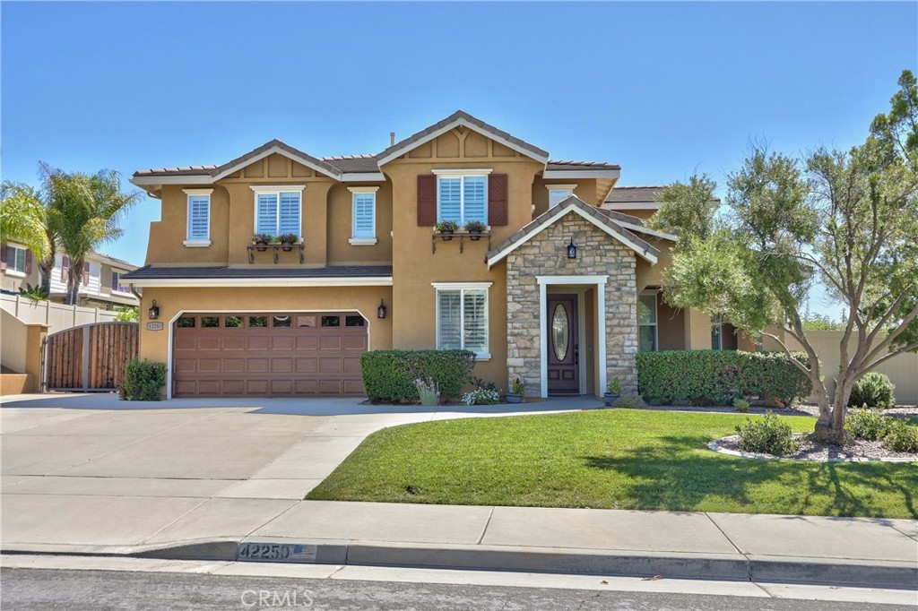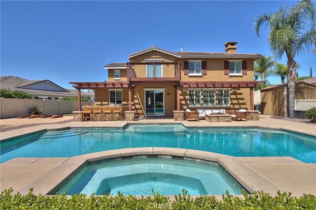 Rare Crown Hill Gem with Pool on one of the largest double Oversized Lots in Crown Hill. Don’t miss this rare opportunity to own a stunning home with views, large side yards on both sides of the home, oversized pool and spa with baja shelf. This beautiful 5-bedroom, 4-bathroom, 3,667 sq ft residence is truly turn-key and offers incredible space, functionality, and style—perfect for multigenerational living and entertaining. The home boasts excellent curb appeal with a 3-car tandem garage, extra-large driveway, double side gates, and a tall, oversized storage shed. The oversized backyard is a showstopper—complete with a sparkling pool and spa, built-in BBQ area, fire pit, covered patio, and wine country views. There’s ample space for a play area, horseshoes, gardening, or even a potential ADU. Step inside to find hardwood floors, a formal living room, and a separate dining room. The heart of the home is the upgraded kitchen, featuring new quartz countertops, a new cooktop, large walk-in pantry, and a butler’s area. A breakfast area with an 8-ft sliding glass door opens to the backyard and floods the space with natural light. The kitchen flows seamlessly into the spacious family room, complete with a cozy fireplace. Downstairs includes a full bedroom and bath and walk in closet—ideal for guests, a home office, or extended family. Downstairs laundry room with sink. Upstairs, enjoy a large loft area that can be used as a media room, playroom, or converted into a 6th bedroom. The primary suite is a retreat, offering a private balcony with breathtaking views, a spacious sitting area, a large walk-in closet, dual vanities, a soaking tub, and a walk-in shower. Three additional generously sized bedrooms—all with walk-in closets—are supported by two full bathrooms. Additional features upstairs include Built-in cabinetry upstairs for books and photos. Ample closets for additional storage. Side yard access with double walk gate and large oversized storage shed can be used as a small workshop. Located within the award-winning Temecula school district. Close to shopping, wineries, and freeway access
